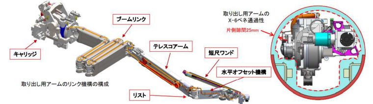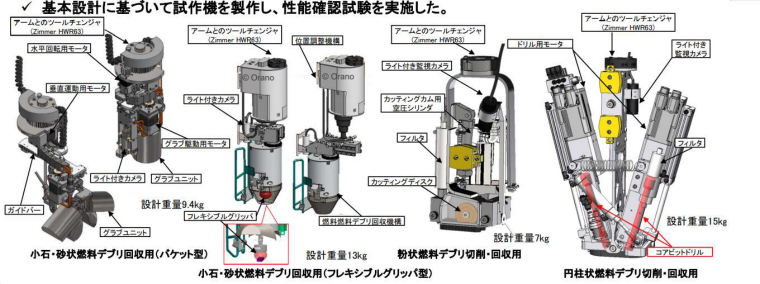 重量20kgの制約があり回収量が数gと少ない。対象別に使い分けることは手間がかかりすぎる。トラブル要因になる。数千Sv/hと予想される極めて高い線量のなかでカメラ、センサーや制御装置が安定的に動作するか課題が残る。