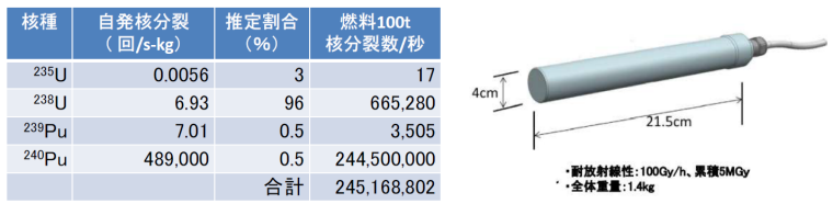 先の格納容器内調査の線量調査から燃料デブリ直近では数千Gy/hと予測される。このシステムは耐放射性に問題あり、燃料デブリ直近では計測できない。したがって燃料デブリは切削中も常時、臨界対策を行う必要がある。