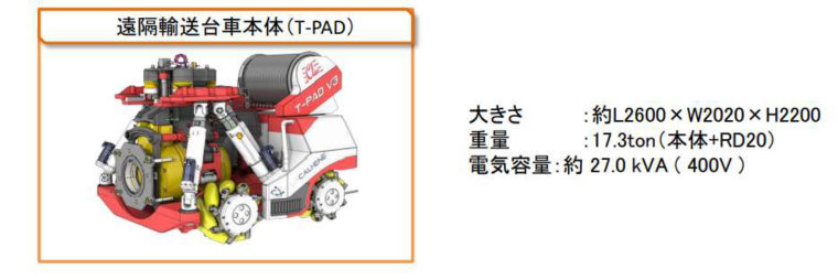 1gの燃料デブリを運ぶ台車の重量が17.3t。原子炉建屋の南西〜北西エリアの床耐力を4.9ton/m2を丁度満たしているように見えるが、この台車荷重は動荷重であるので設計上、荷重に衝撃係数を掛ける必要があるが考慮されていない。さらに北西隅1.22ton/m2の床耐力には及ぼない。現状で仕様を満たしていない。たとえ北西隅を床補強したとしても、今後1g以上回収するには荷重が大きくなり遮蔽鉛も増やすので床に係る荷重は床耐力を大幅に超えると予想され、この遠隔輸送台車は継承できない。