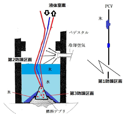 防護区画を行うために燃料デブリの冷却を循環空冷に切り替える方法を検討。